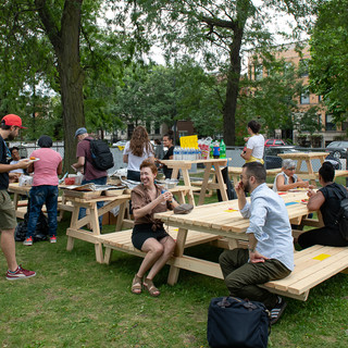 During the summer of 2019, Overton was opened up for a series of Activation Days during which architects, artists, and community members were welcomed into the space to learn about the space and work on installations around the premises. After three activations (June-August), their collaborations were showcased in a Community Day that drew people from around the world and across the street. Upbeat tunes from DJ Sadie Woods and La Spacer and the whiff of Ms. Lee's Good Food wafted through the hallways of the former school, bringing the building to life again for a day. Each classroom became a space for teams to reconcile with and re-imagine the imprint a school closure leaves on a place and a people. By bringing people together with different personal, academic and artistic backgrounds, the projects generated conversations and spaces that reflected the complexity of the site’s context. Some projects were focused on the school’s legacy, while others concentrated on the present urban context of Bronzeville. As with any collaborative endeavor, each person and team brought a different concern to the table, some grappling with race and equity, and others exploring environmental possibilities.